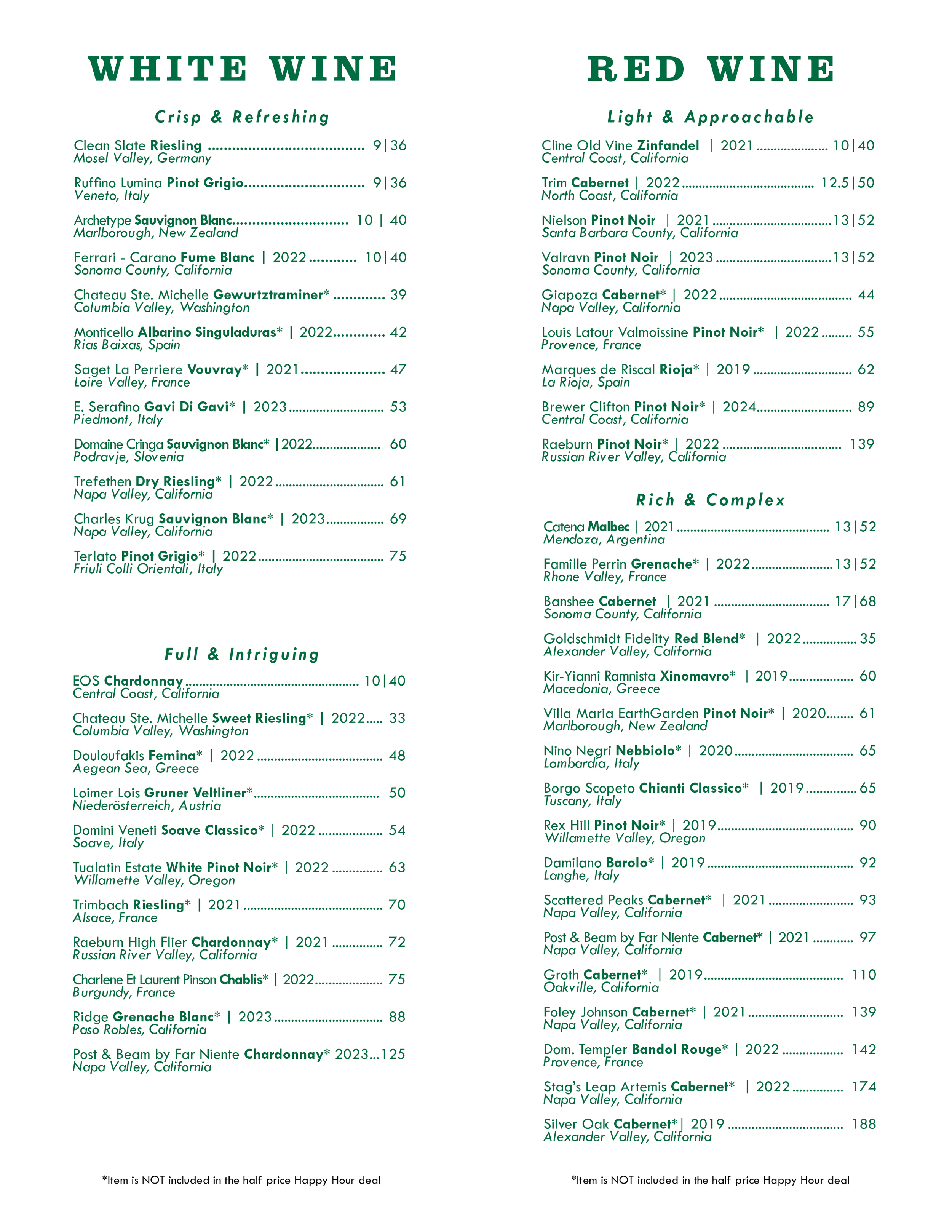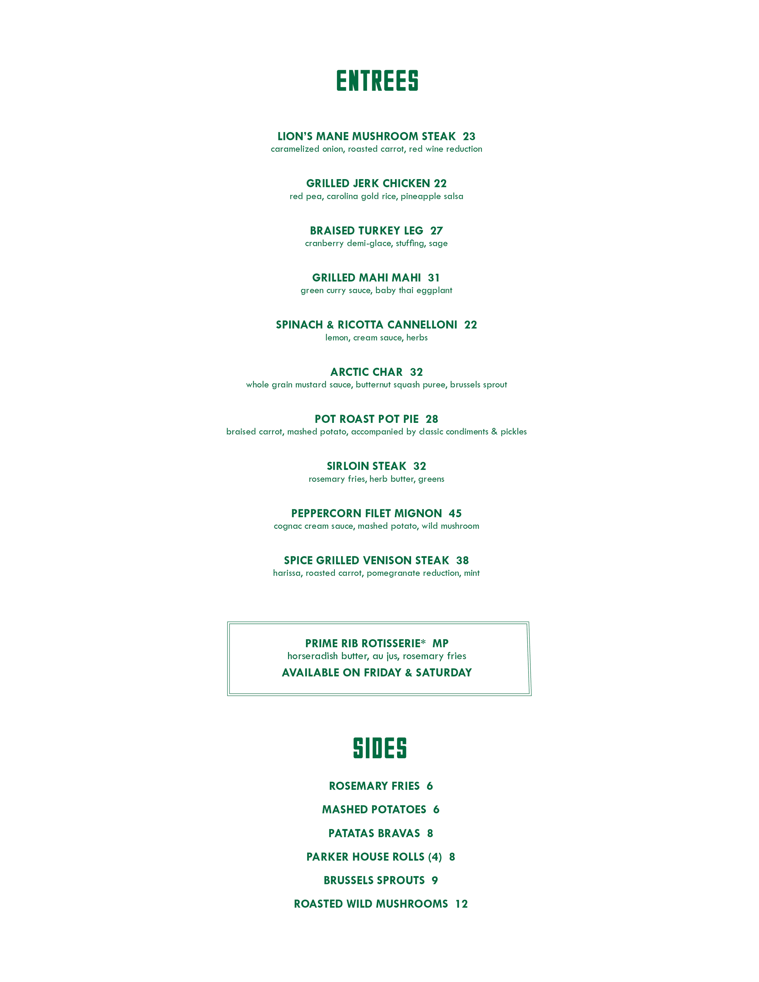 DINNER & DRINK MENU